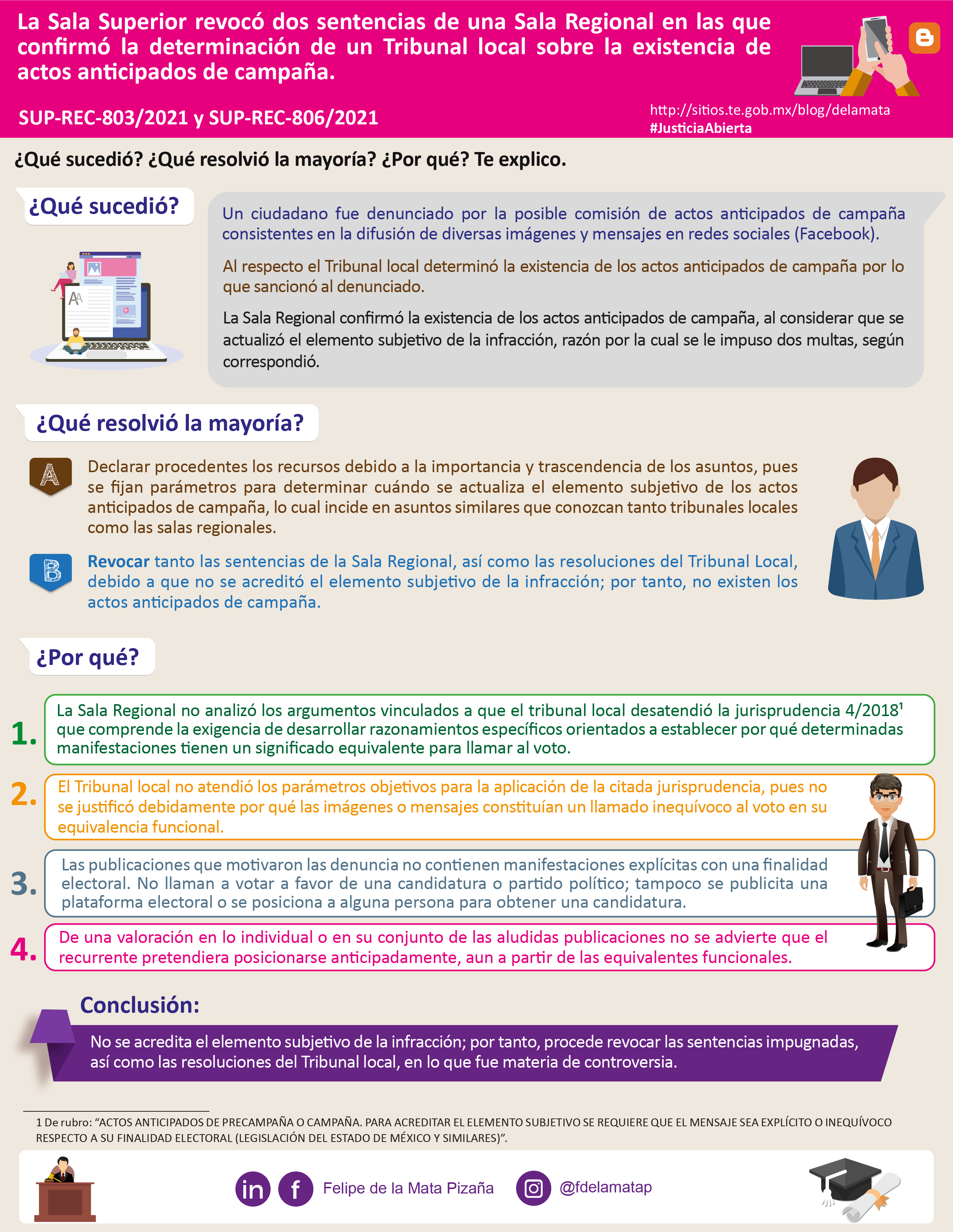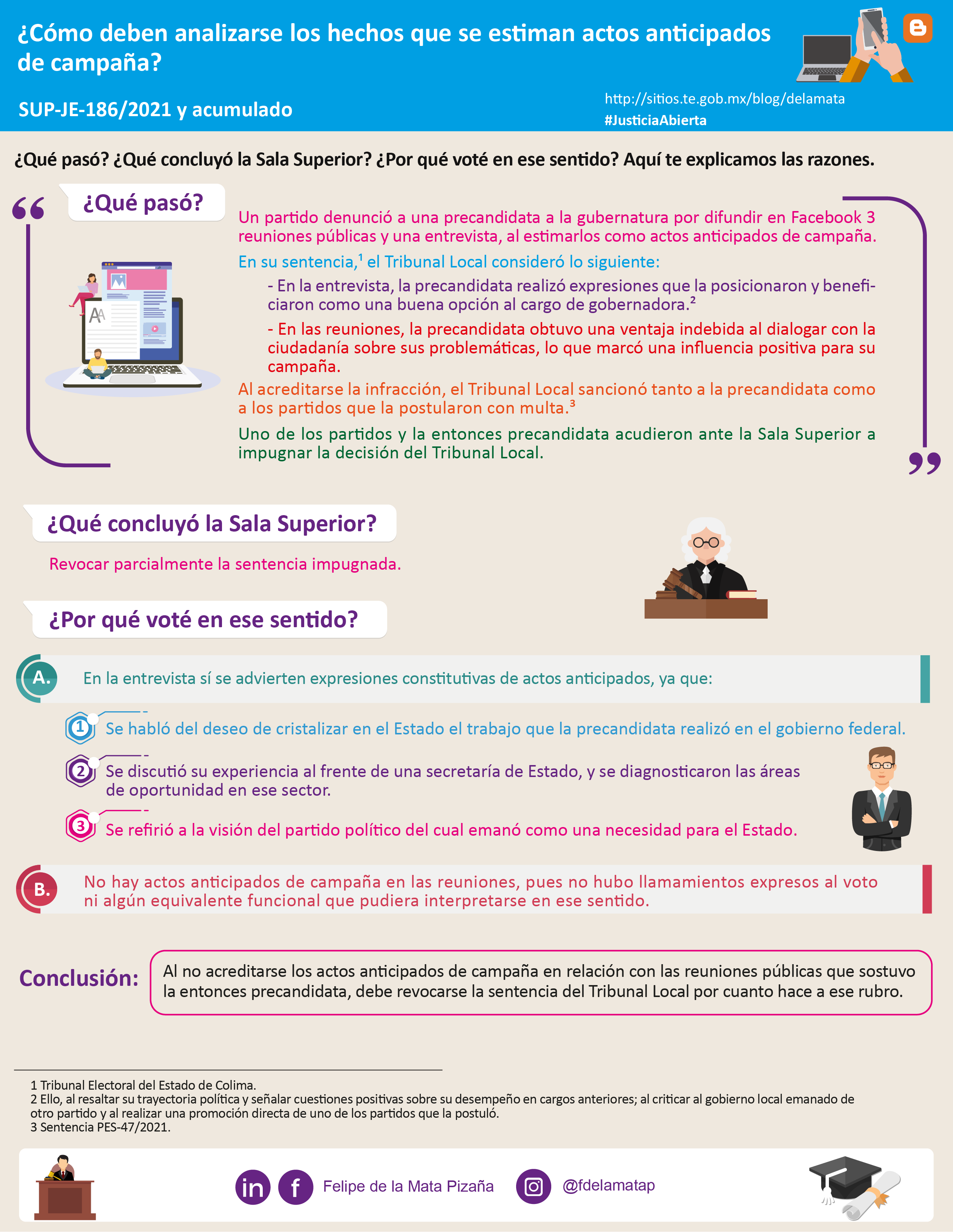 Descargar infografíaLa Sala Superior revocó dos sentencias de una Sala Regional en las que confirmó la determinación de un Tribunal local sobre la existencia de actos anticipados de campaña.