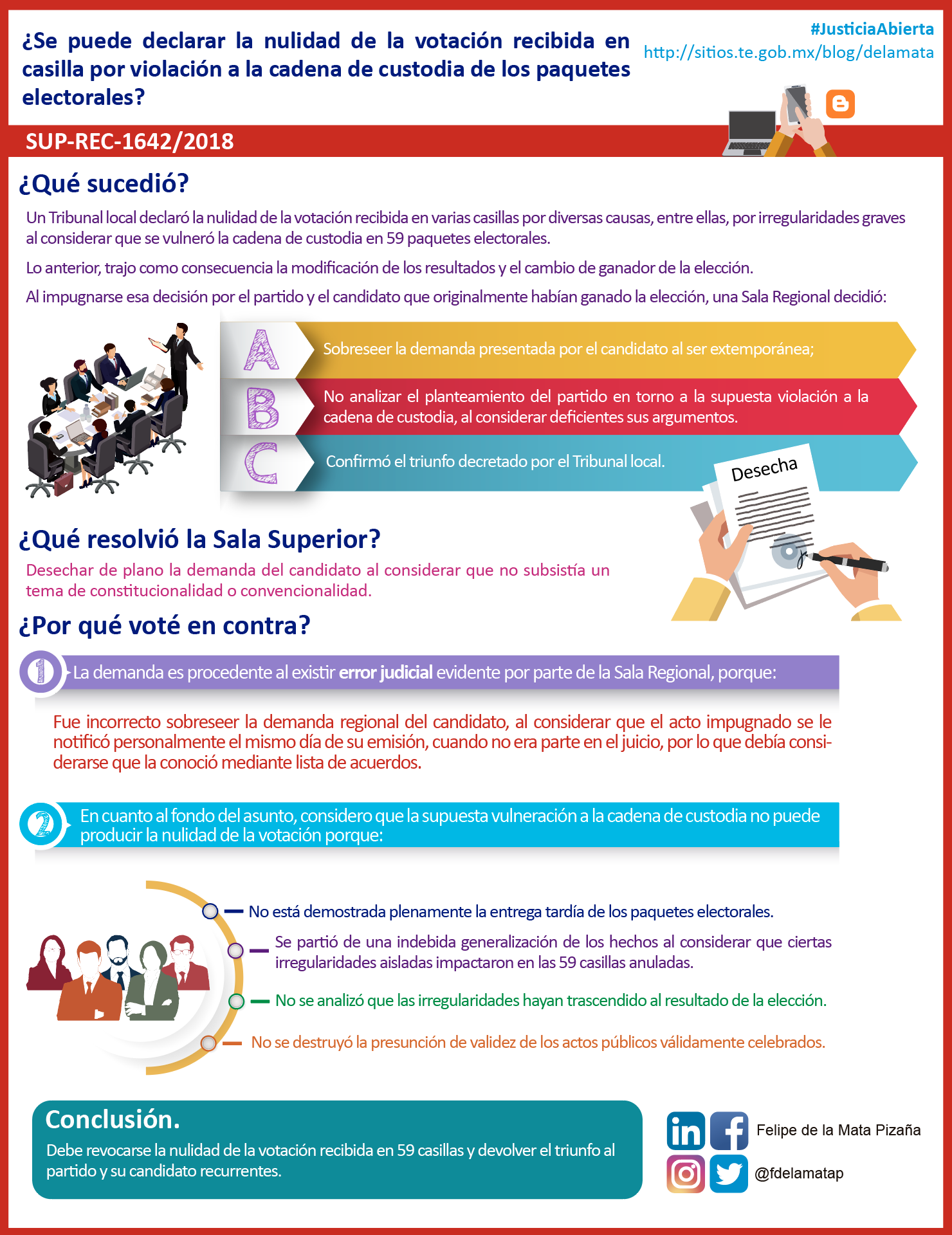 Descargar infografía¿Se puede declarar la nulidad de la votación recibida en casilla por violación a la cadena de custodia de los paquetes electorales?