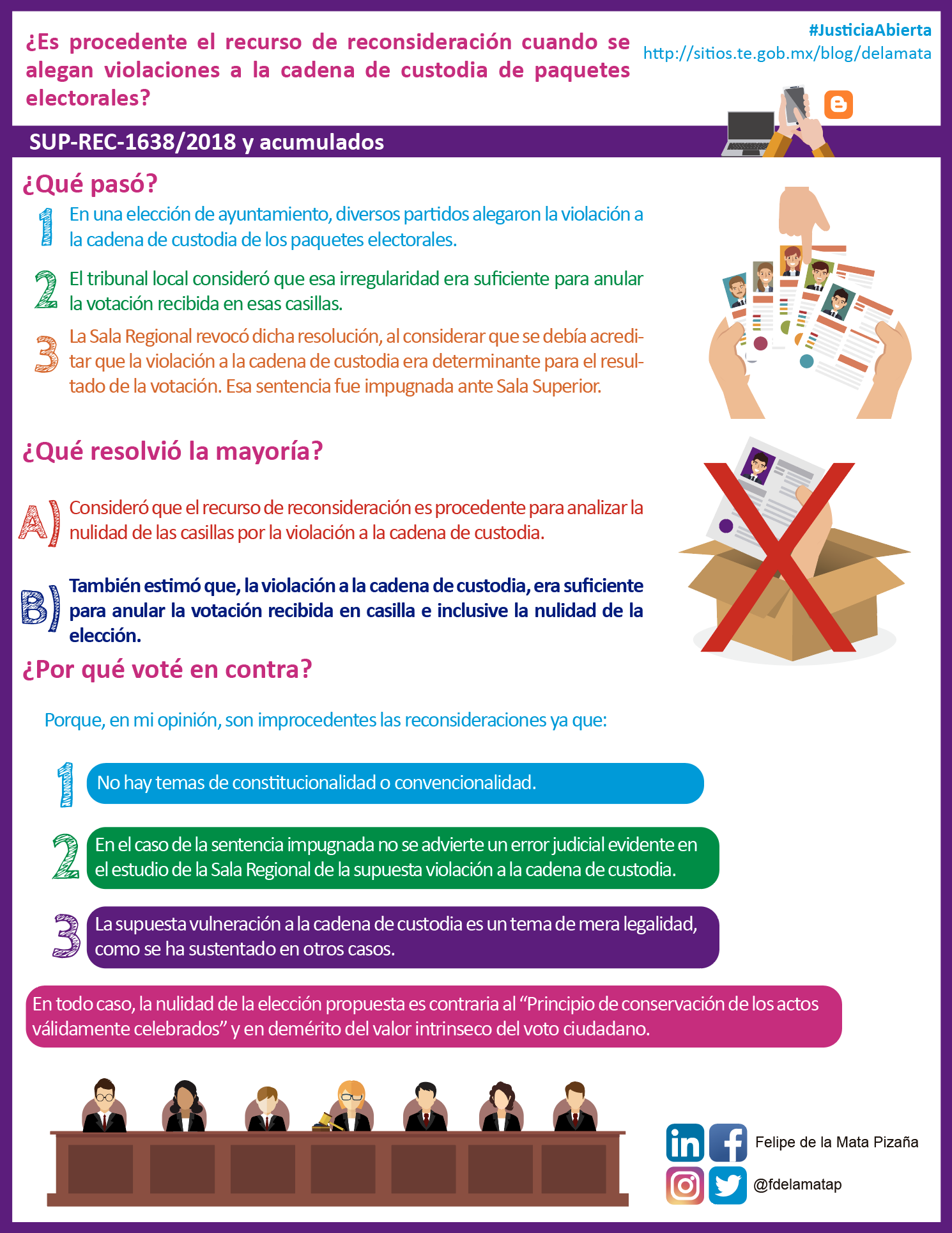 Descargar infografía¿Es procedente el recurso de reconsideración cuando se alegan violaciones a la cadena de custodia de paquetes electorales?