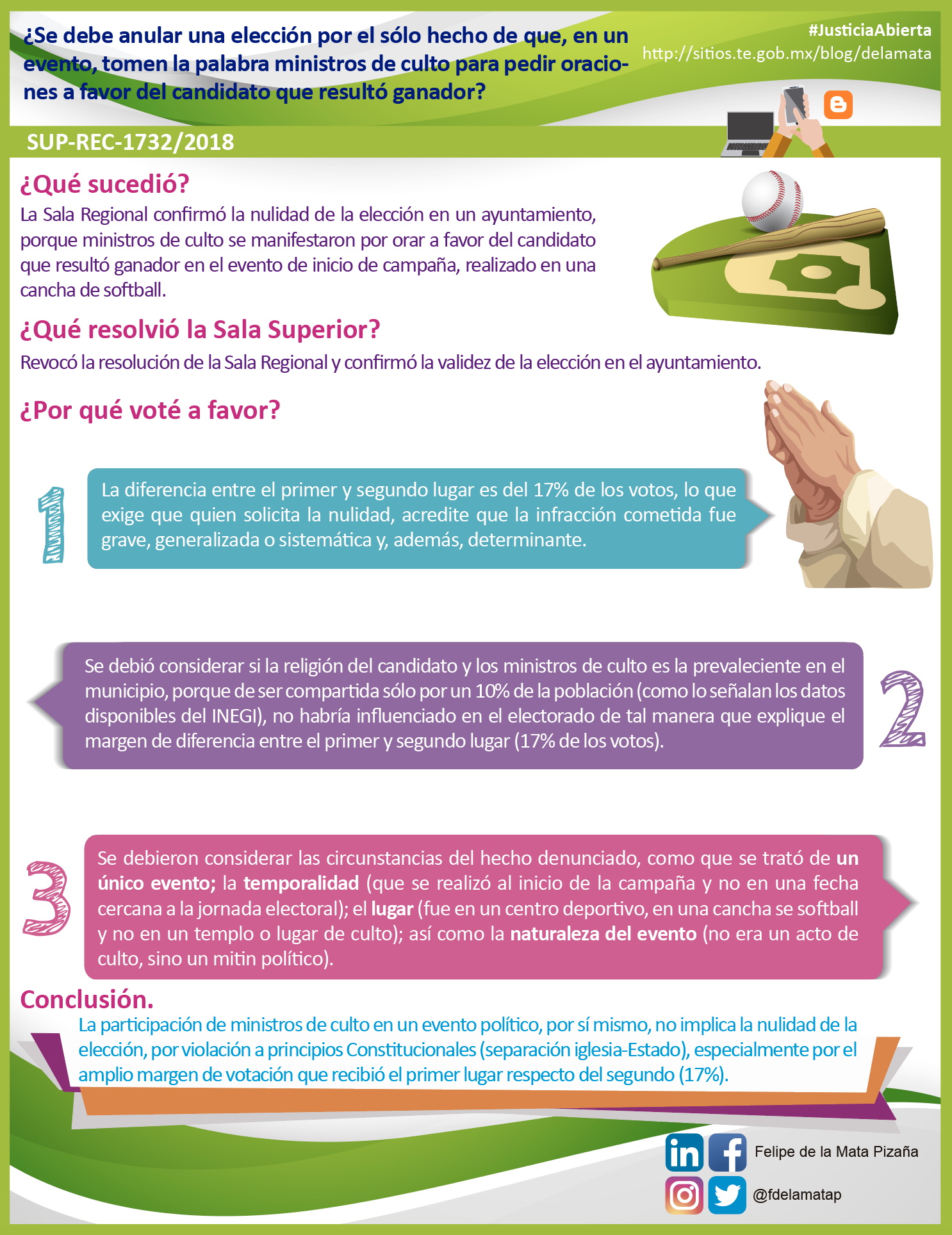 Descargar infografía¿Se debe anular una elección por el sólo hecho de que, en un evento, tomen la palabra ministros de culto para pedir oraciones a favor del candidato que resultó ganador?