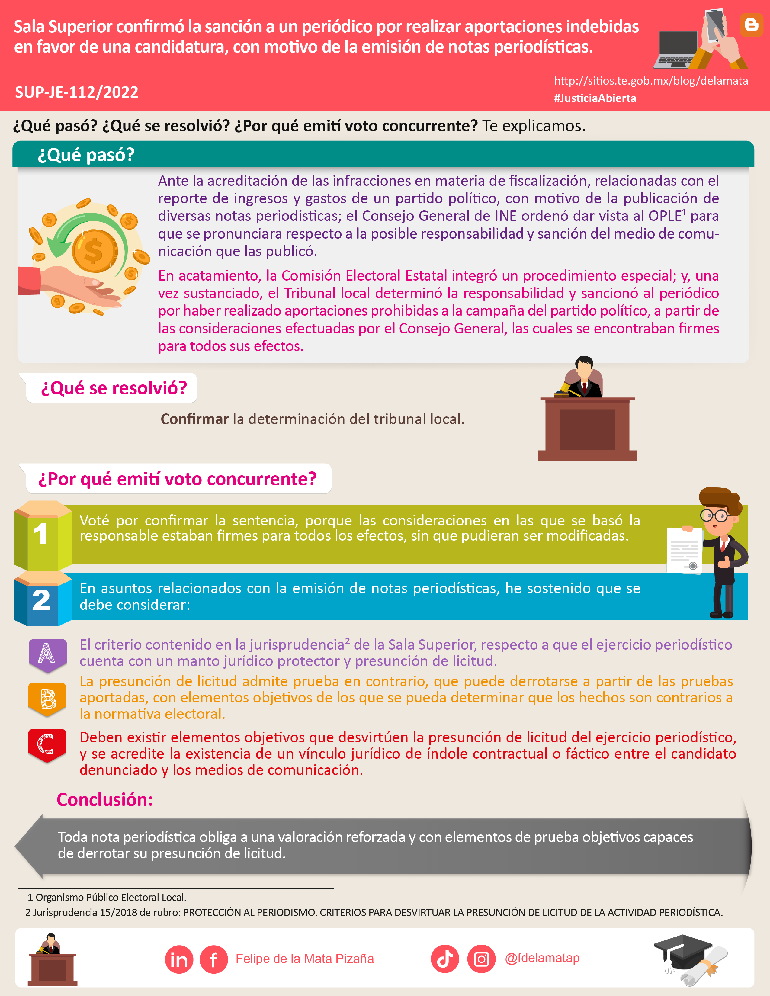 Descargar infografíaLa Sala Superior confirmó la sanción a un periódico por realizar aportaciones indebidas en favor de una candidatura, con motivo de la emisión de notas periodísticas.