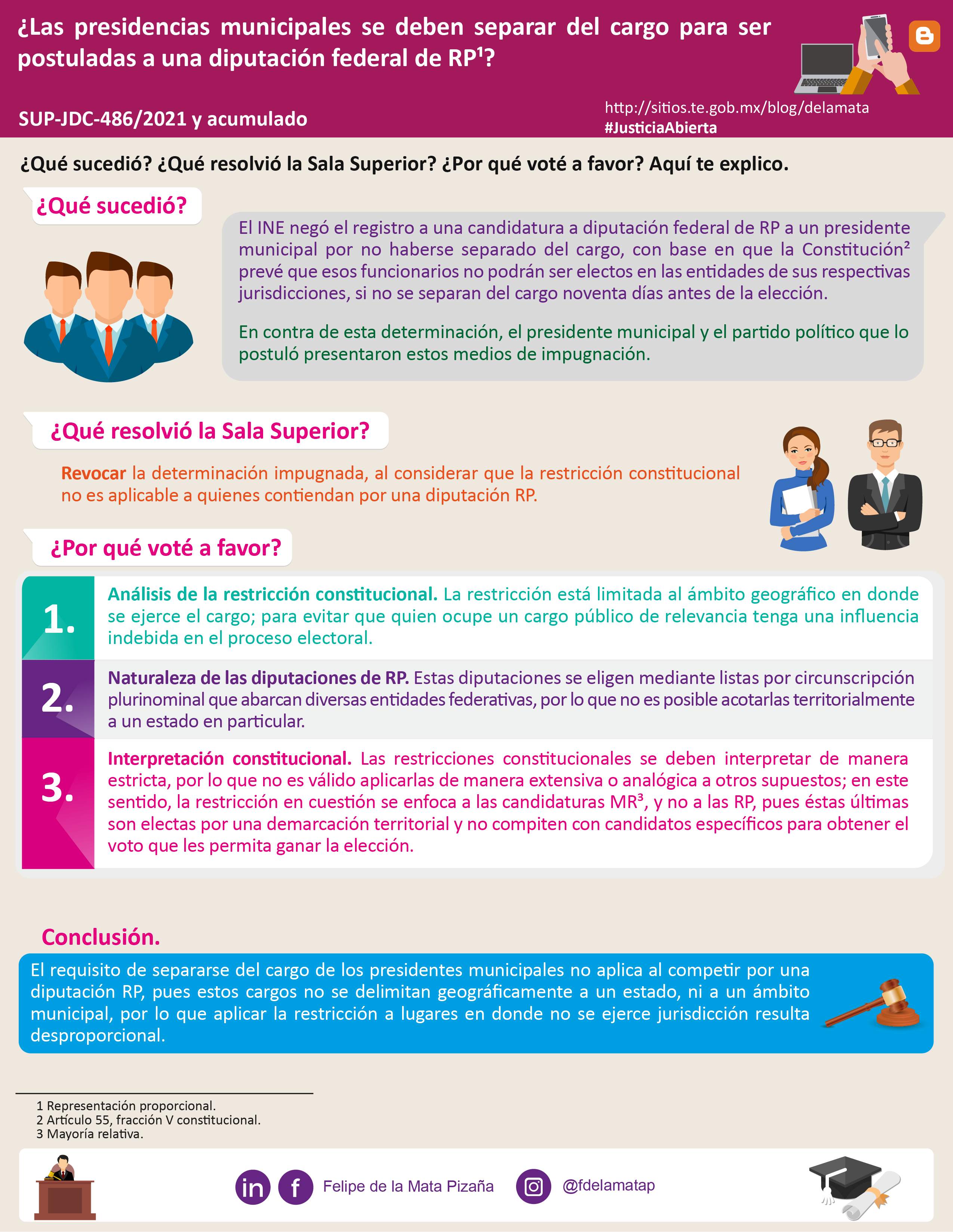 Descargar infografía¿Las presidencias municipales se deben separar del cargo para ser postuladas a una diputación federal de RP¹?