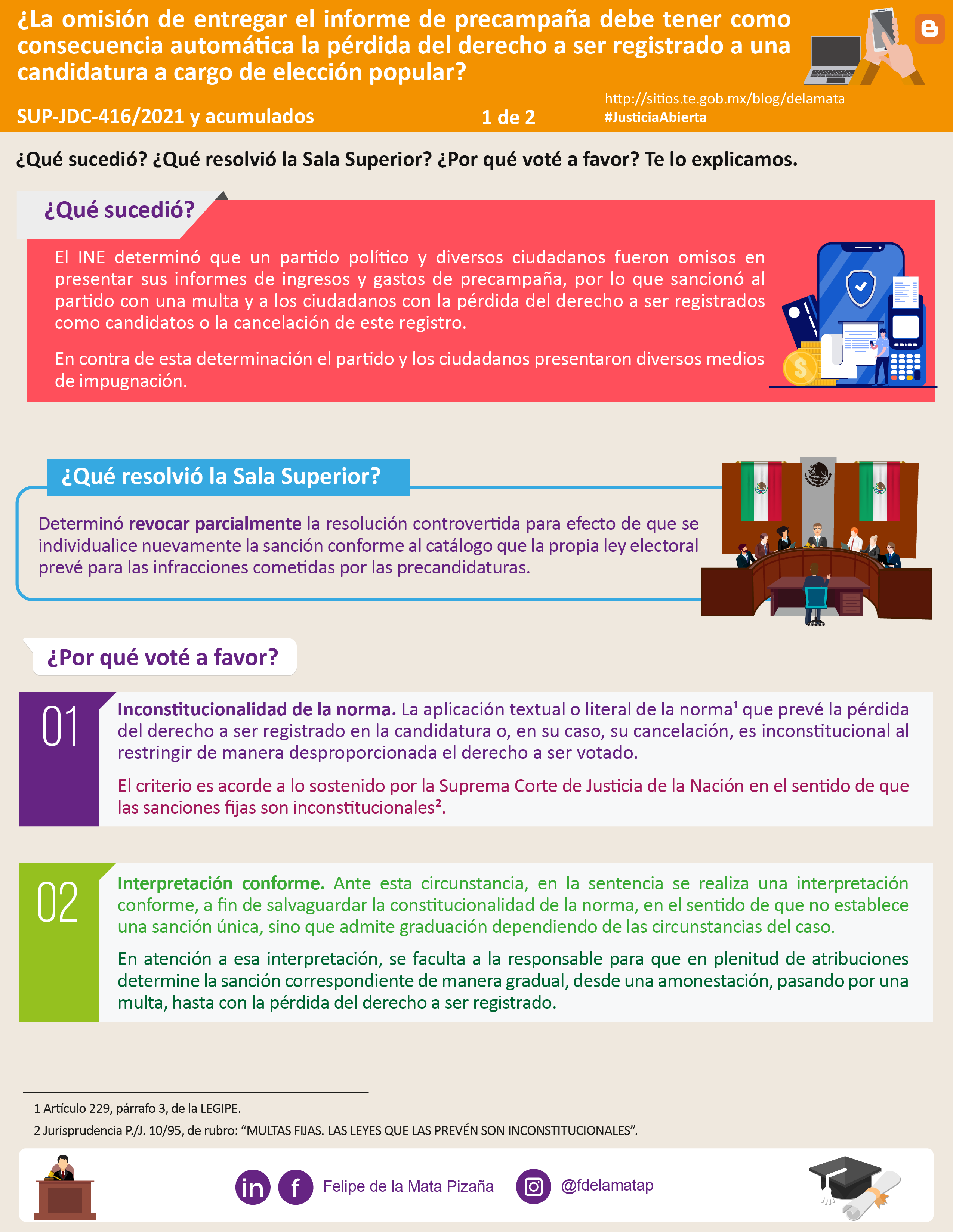 Descargar infografía¿La omisión de entregar el informe de precampaña debe tener como consecuencia automática la pérdida del derecho a ser registrado a una candidatura a cargo de elección popular?