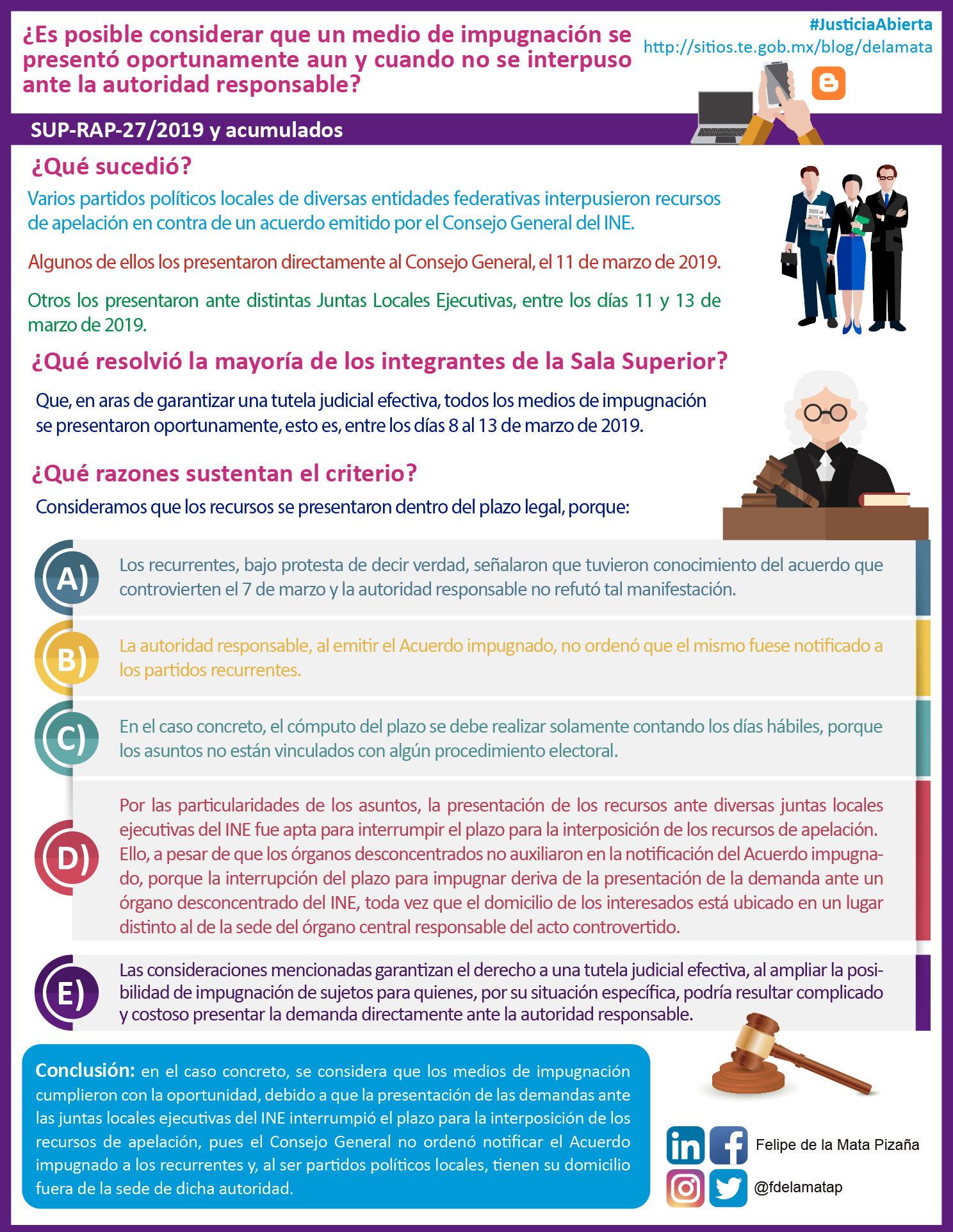 Descargar infografía¿Es posible considerar que un medio de impugnación se presentó oportunamente aun y cuando no se interpuso ante la autoridad responsable?