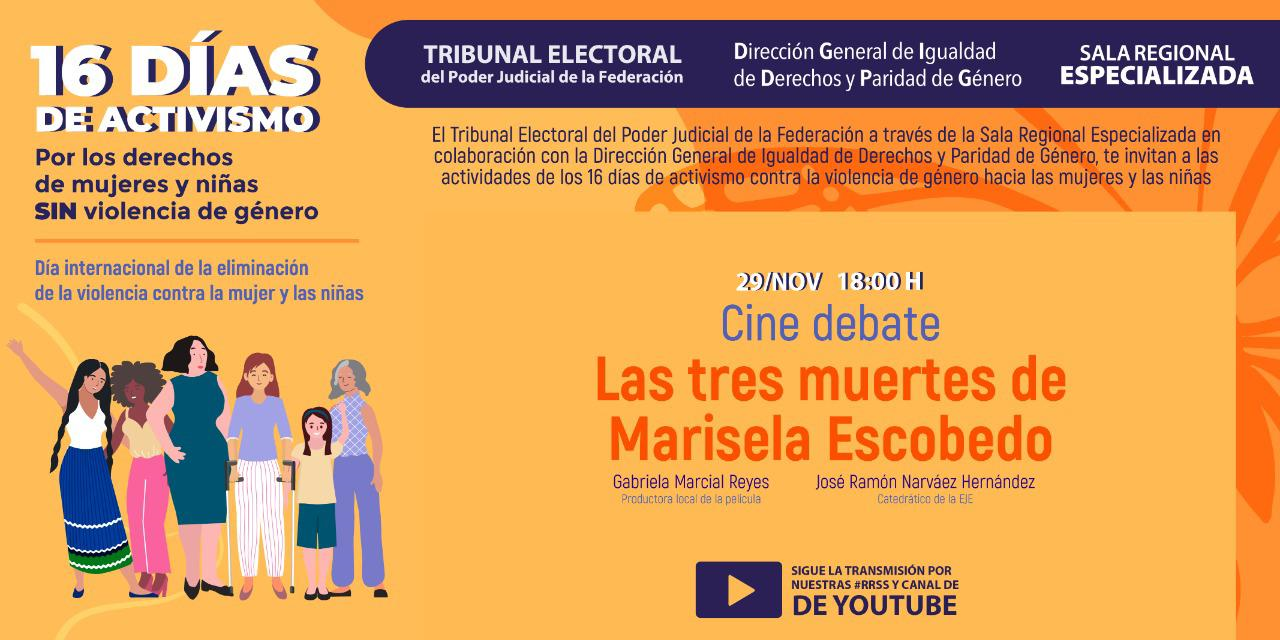Reflexión e intercambio de opiniones con Gabriela Marcial Reyes y José Ramón Narváez Hernández, sobre la temática de película Las Tres Muertes de Marisela Escobedo y la situación que enfrenta el país en relación con los feminicidios.